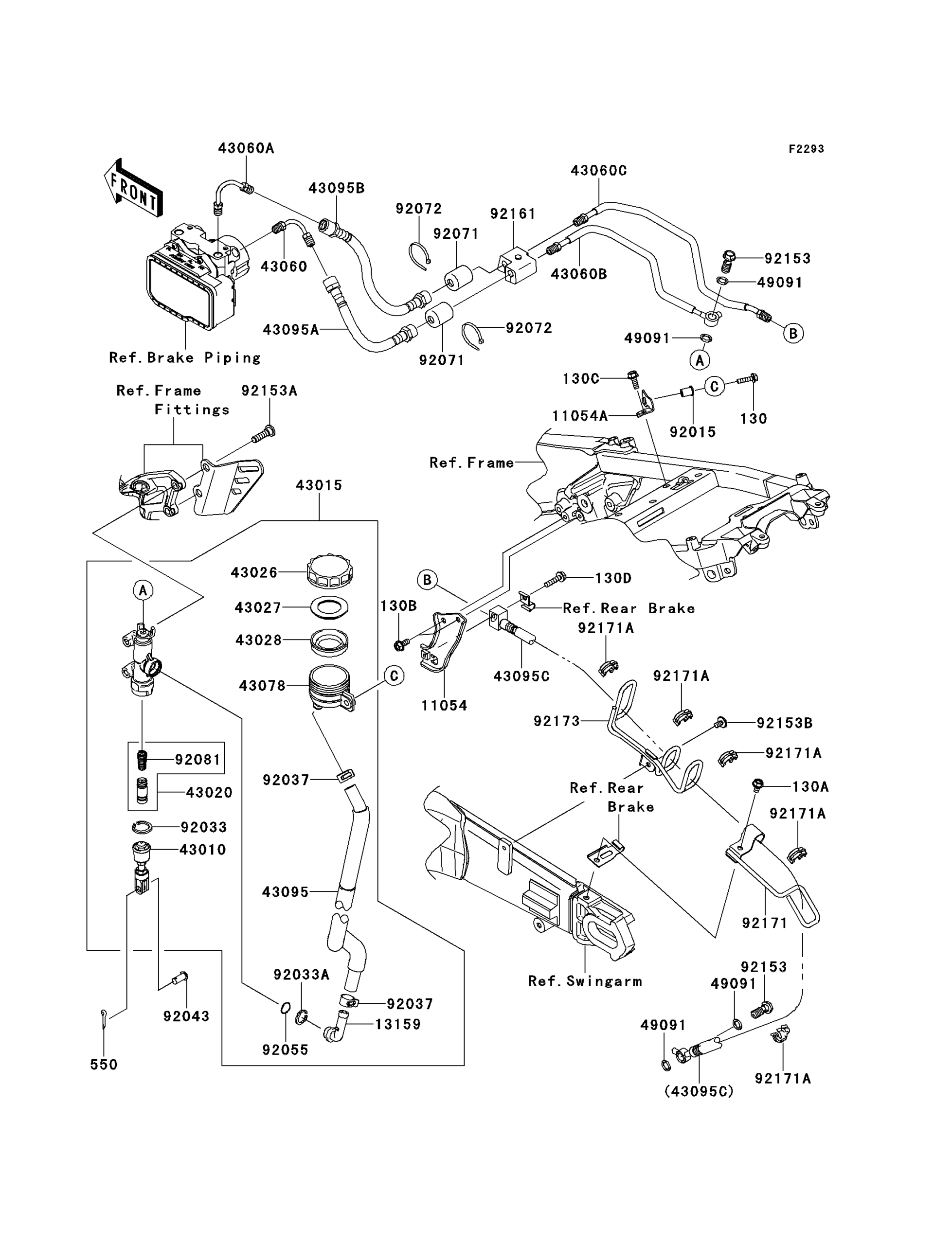 Verlegung: ähnlich original – Modell mit ABS – ohne die 4 kurzen Leitungen am ABS